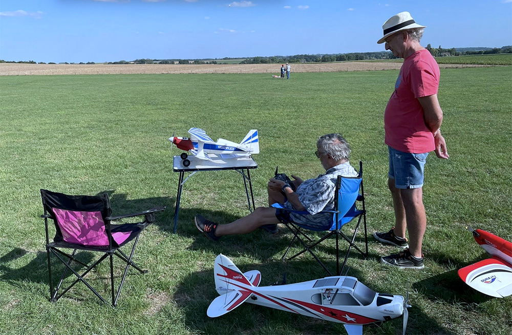 Nombre de visiteurs sont passés par chez nous ce jour-là, et parmi eux une petite famille, le papa avec trois enfants, habitant le village de Mille et arrivés en gros 4X4. D'ici un an ou deux, ces enfants seront assez grands pour commencer leur apprentissage. En attendant, les modèles réduits radiocommandés les fascinent.